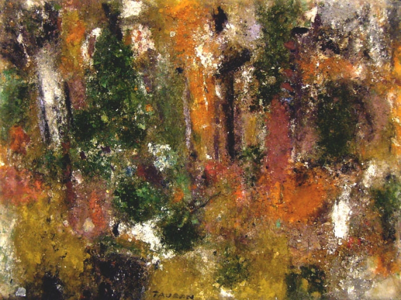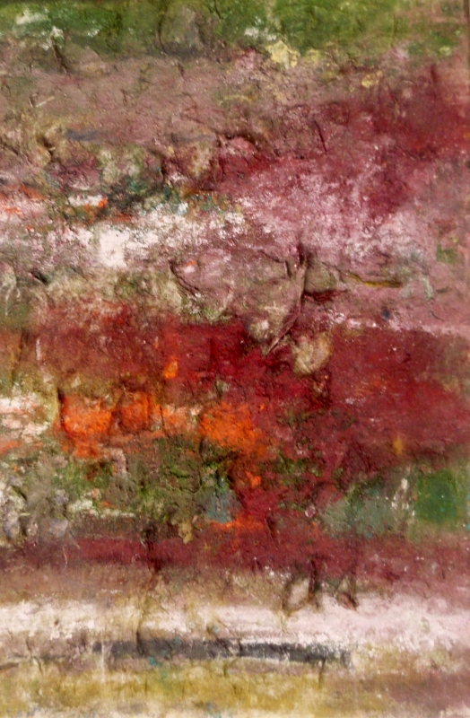Les fibres apparentes accentuent un effet de matière et de relief et donnent parfois à l’œuvre un aspect laineux, duveteux de vieux parchemin coloré.